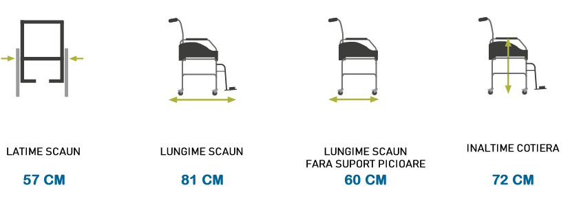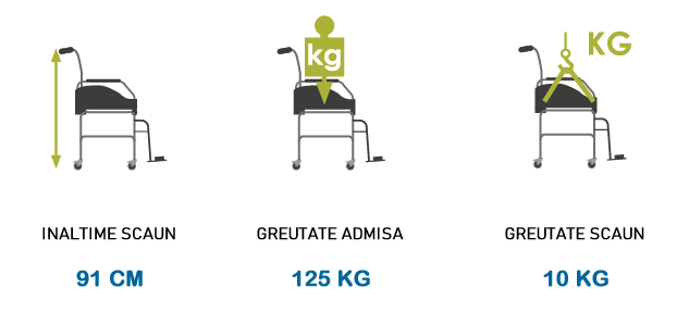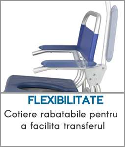 Are ca valoare adaugata existenta cotierelor rabatabile pentru a facilita transferurile. Suport de picioare cu deschidere bilaterala,detasabile si pliabile in interior si in exterior.