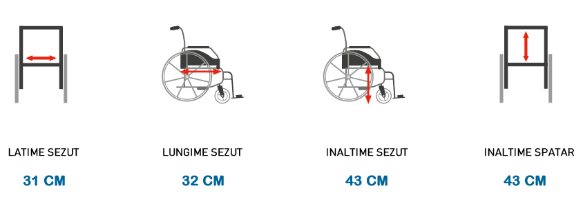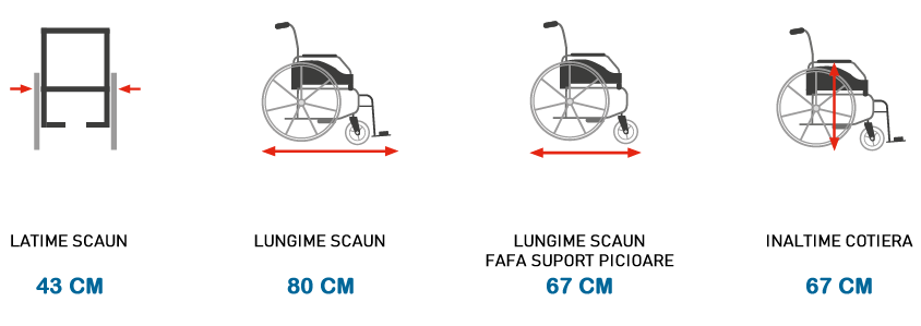 Scaun pentru invalizi, rotile manuale, tetiera reglabila, PLANE