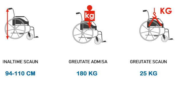 Scaun pentru invalizi, rotile manuale, tetiera reglabila, PLANE.